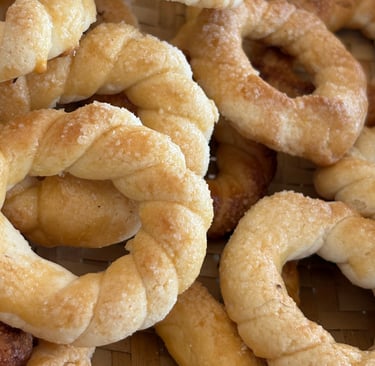 A rosquinha trançada, com sua forma delicada e sabor reconfortante, remete as tradições das receitas feitas a mão, cheias de cuidado e memória afetiva. Sua aparência artesanal inspira a criação de biscoitos que valorizam a simplicidade e o prazer dos sabores clássicos, resultando em produtos leves, acolhedores e naturalmente agradáveis..