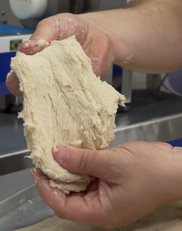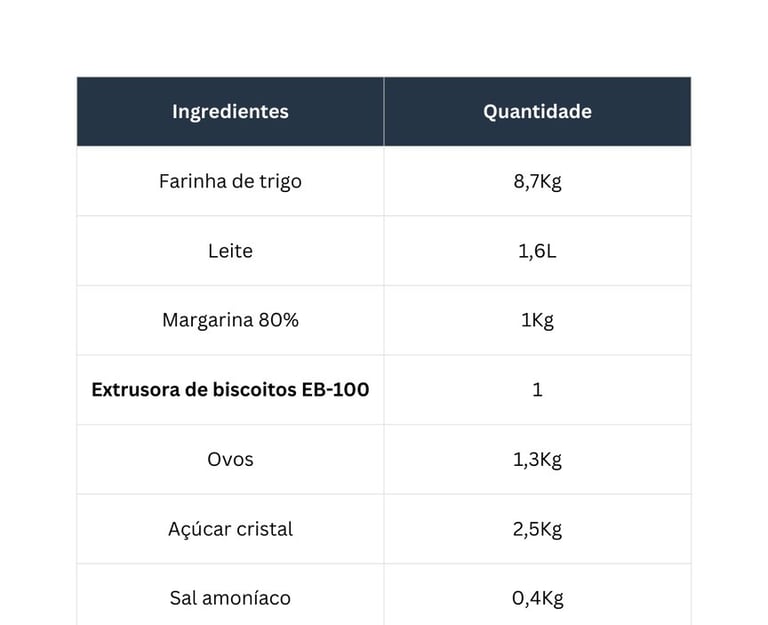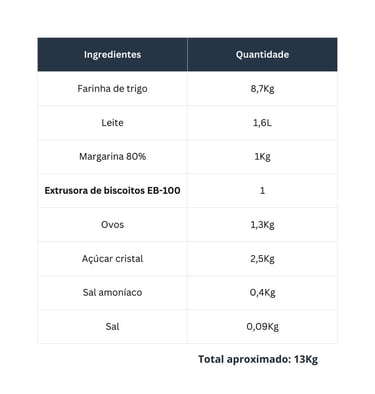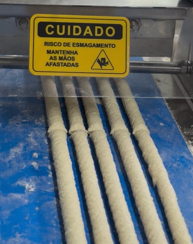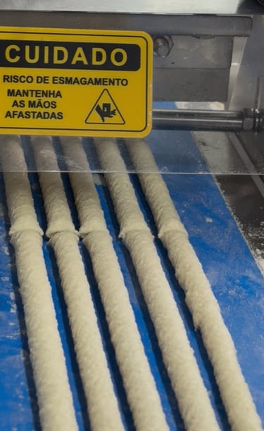 Extrusora de Biscoitos foi utilizada para formar as tiras de massa com precisão e padronização, garantindo o formato ideal para a realização das rosquinhas trançadas. O uso do equipamento agilizou o processo e assegurou uniformidade em toda a produção.